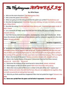 Online PDF HIGHWAYMAN POEM AND QUESTIONS Hardcover ManyBooks